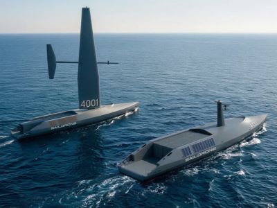 Компания Saildrone на выставке Sea Air Space 2026 (19–22 апреля) представила макеты своей новой платформы Spectre. 52-метровый безэкипажный корабль может быть как с жестким парусом высотой 43 м, так и без, применяя дизельные двигатели Caterpillar общей мощностью 5 000 л.с. При вместимости до 70 т (два 40-футовых контейнера или до пяти 20-футовых), полезная нагрузка может быть пусковой установкой типа Lockheed Mk 70 PDS, буксируемой ГАС типа Thales CAPTAS-4 и других типов. Строительство собираются начать в ближайшее время, а ходовые испытания планируются в следующем году. На сегодня уже эксплуатируются около 150 парусников Saildrone: ~ 100 ед. 7-метровых Explorer, 30–40 ед. 10-метровых Voyager и 5–10 ед. 20-метровых Voyager.